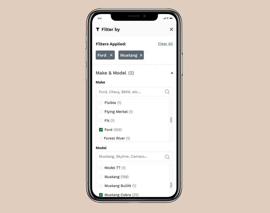 After conducting interviews, surveys, and competitor analysis, I determined that the best approach was to rebuild the vehicle search filter to match the familiar design from our previous structure and common industry standards. This made it easier for existing users to find and use the filters, while new users could quickly navigate the interface, as it aligned with similar car marketplace websites.