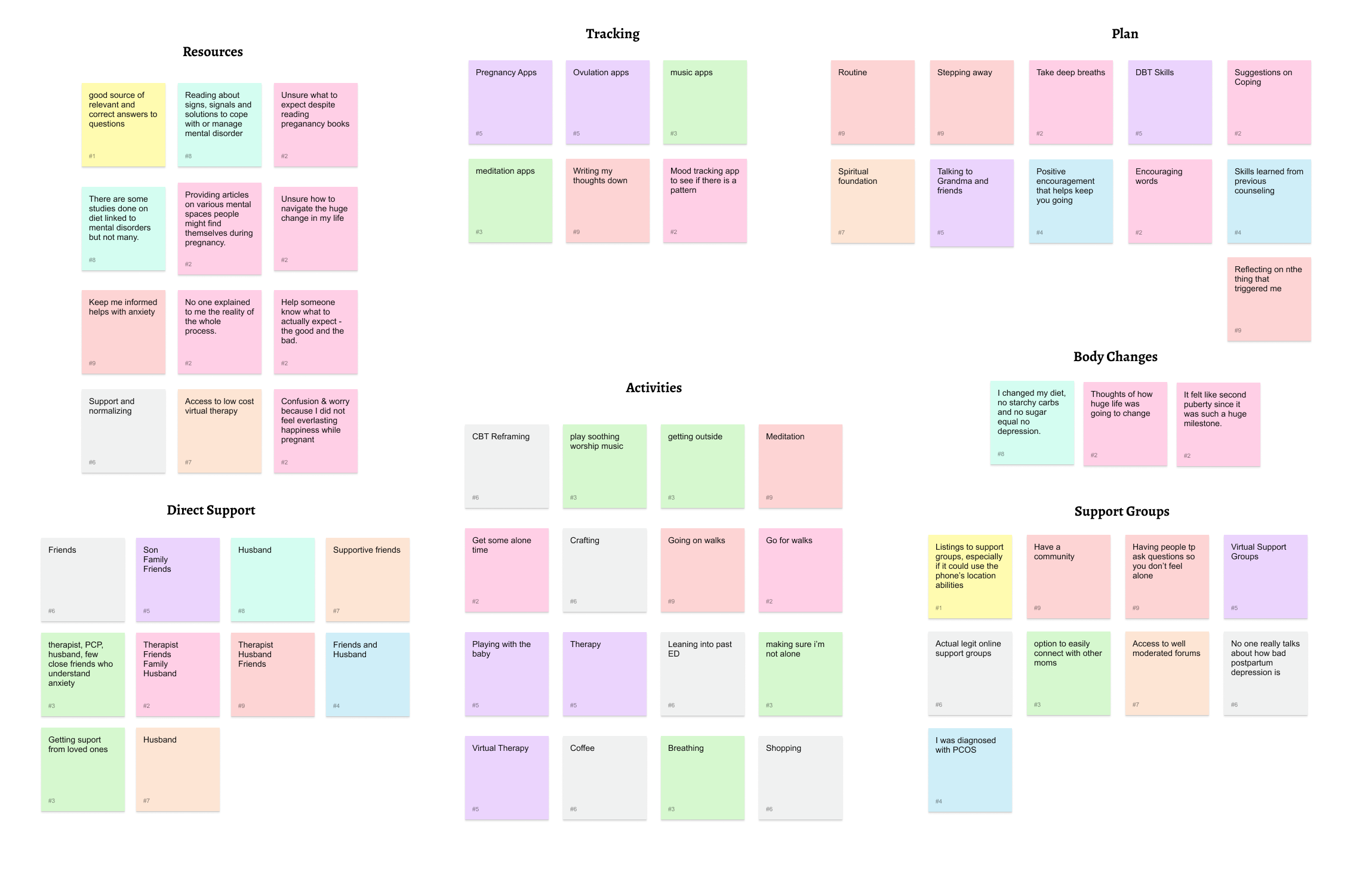 From the information I gathered from the interviews, I was able to logically group the notes into 7 groups.