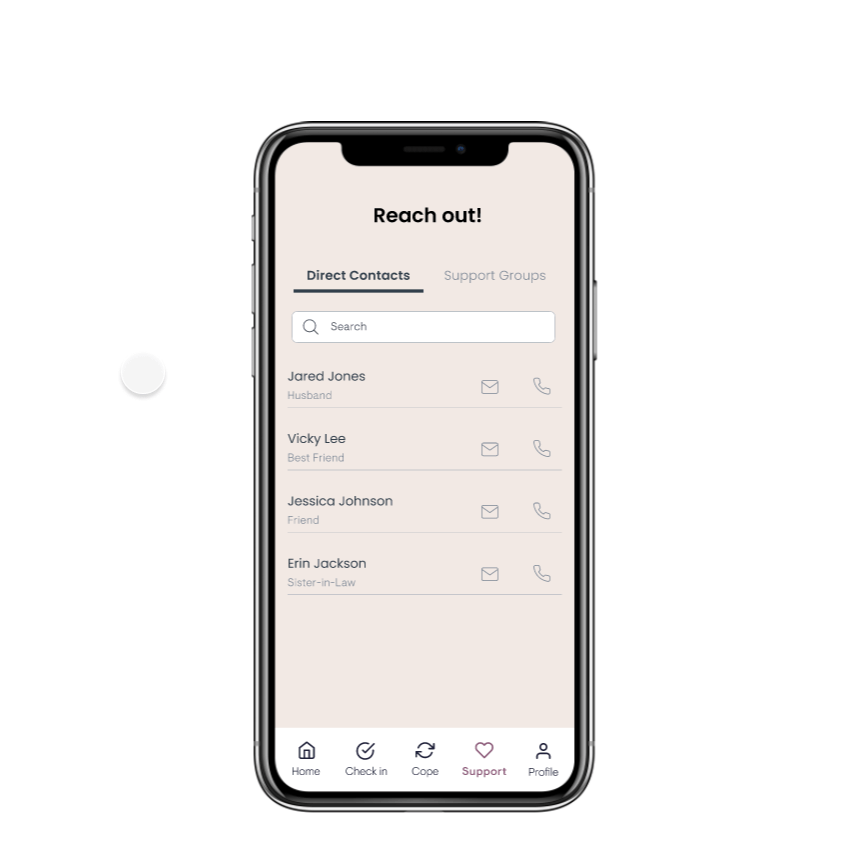 Aside from the coping guidance, you can also conveniently reach out to your support system during the moments you need them the most. It is tough to reach out for help or just a listening ear when feeling down. The app tracks your mood and allows you to set up personalized messages to your direct support group when you log a low mood rating.
